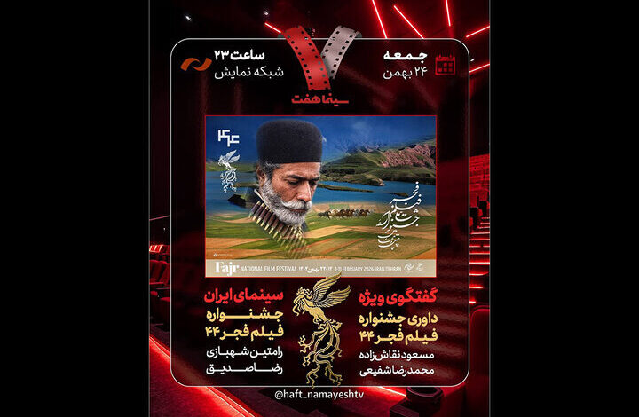 به گزارش خبرگزاری خبرآنلاین به نقل از روابط عمومی برنامه، جدیدترین قسمت از برنامه سینمایی «هفت» شامگاه جمعه ۲۴ بهمن از ساعت ۲۳ روی آنتن شبکه نمایش میرود.