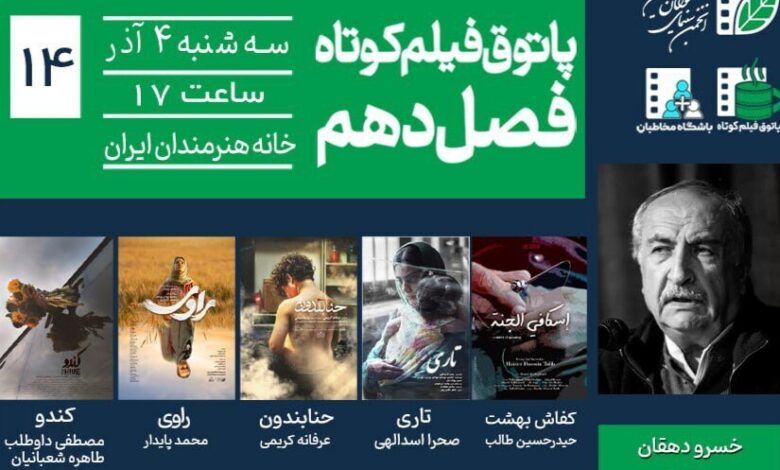 به گزارش خبرگزاری خبرآنلاین به نقل از روابط عمومی انجمن سینمای جوانان ایران، چهاردهمین جلسه از دهمین فصل پاتوق فیلم کوتاه، روز سه‌شنبه ۴ آذر ۱۴۰۴ با نمایش ۵ فیلم کوتاه در خانه هنرمندان ایران برگزار خواهد شد.